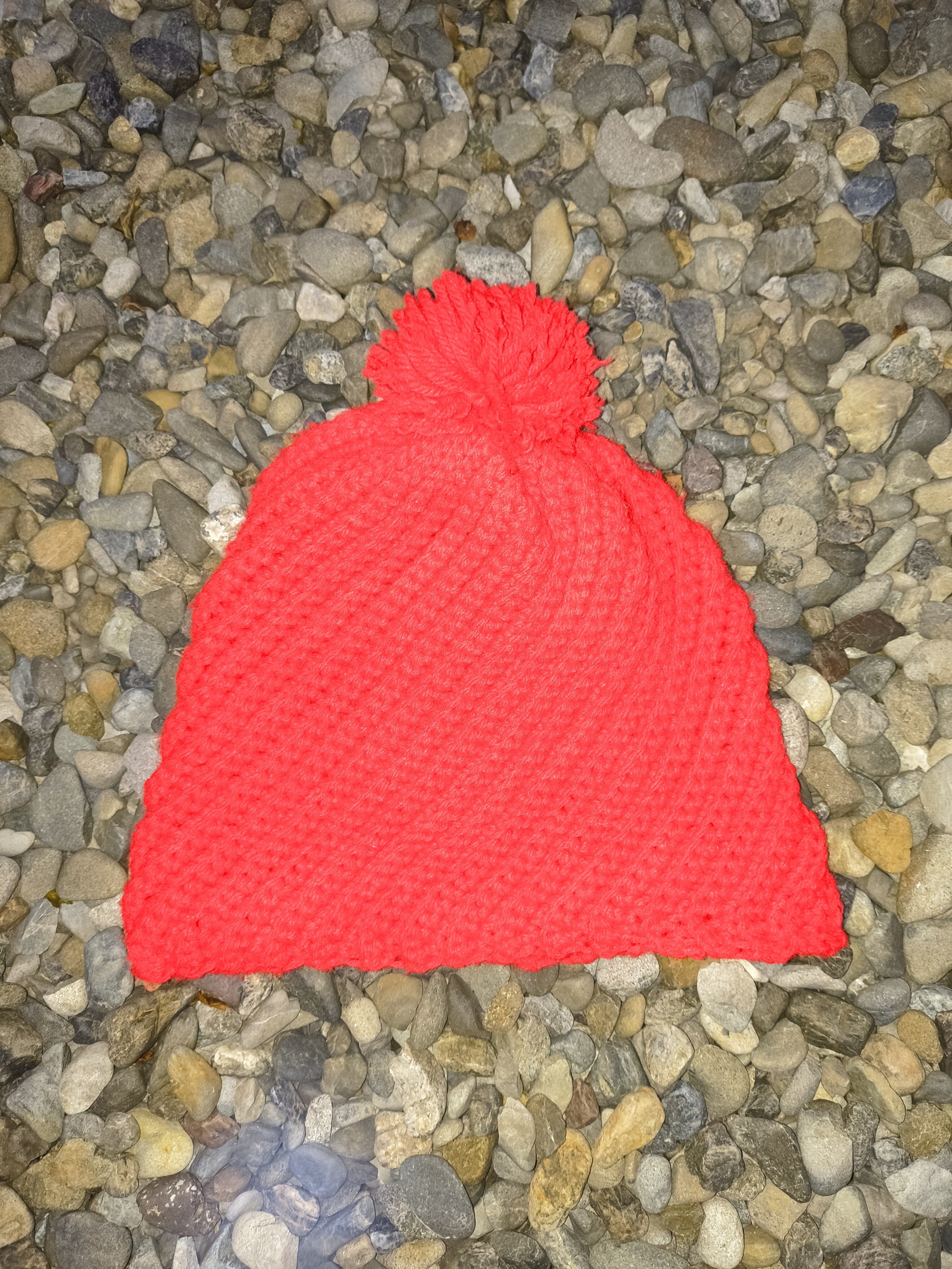 赤ボンボンのニットキャップ。
