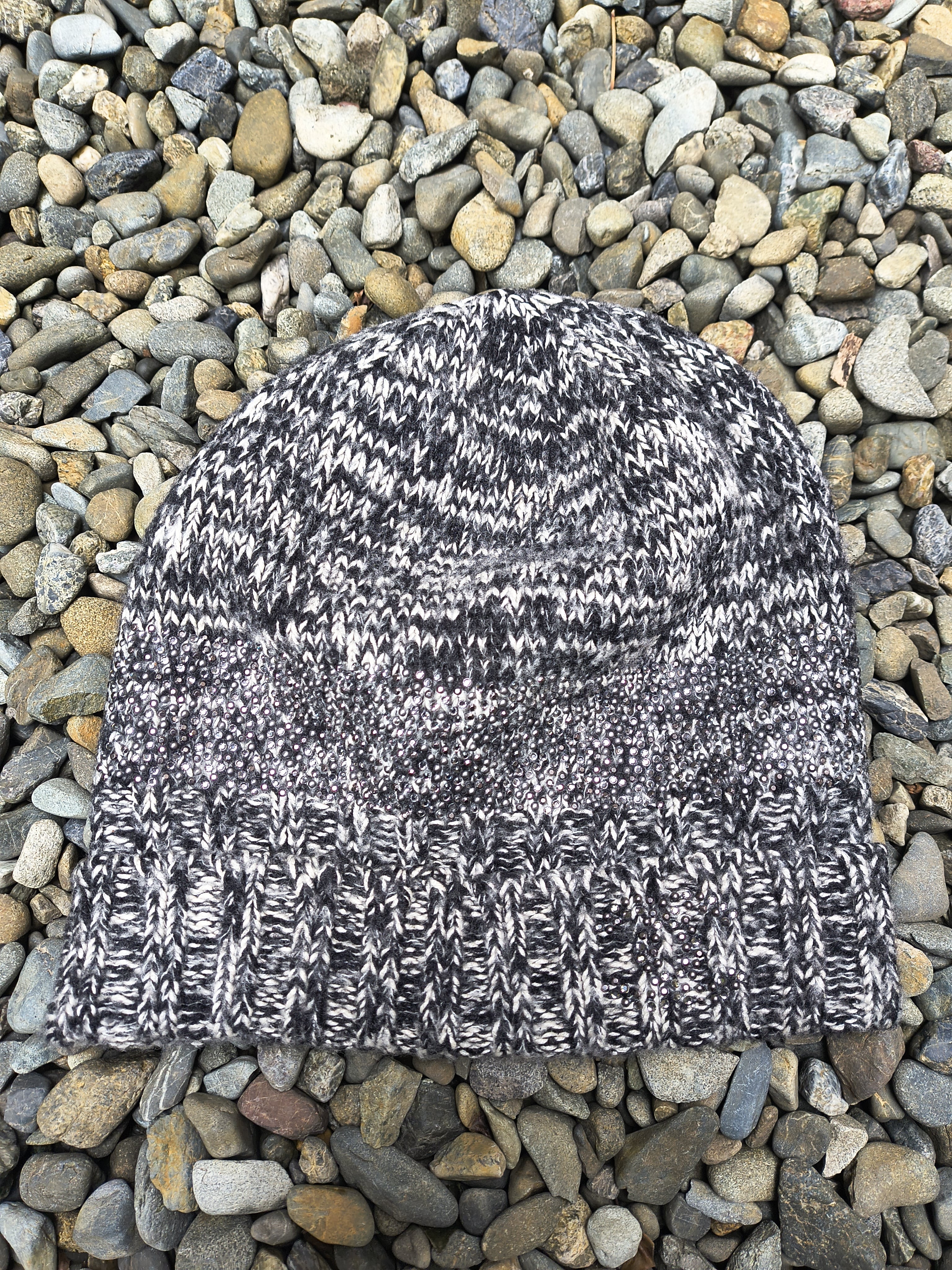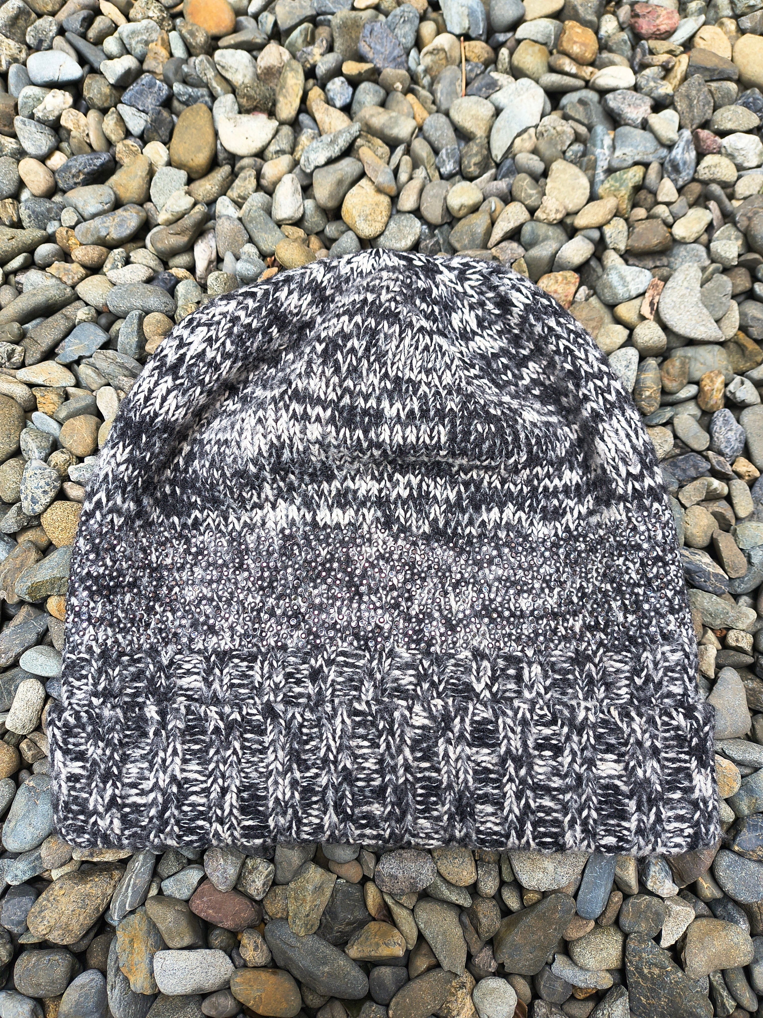 すごく分かりづらい、シャネルのストーンデコのニットキャップ。