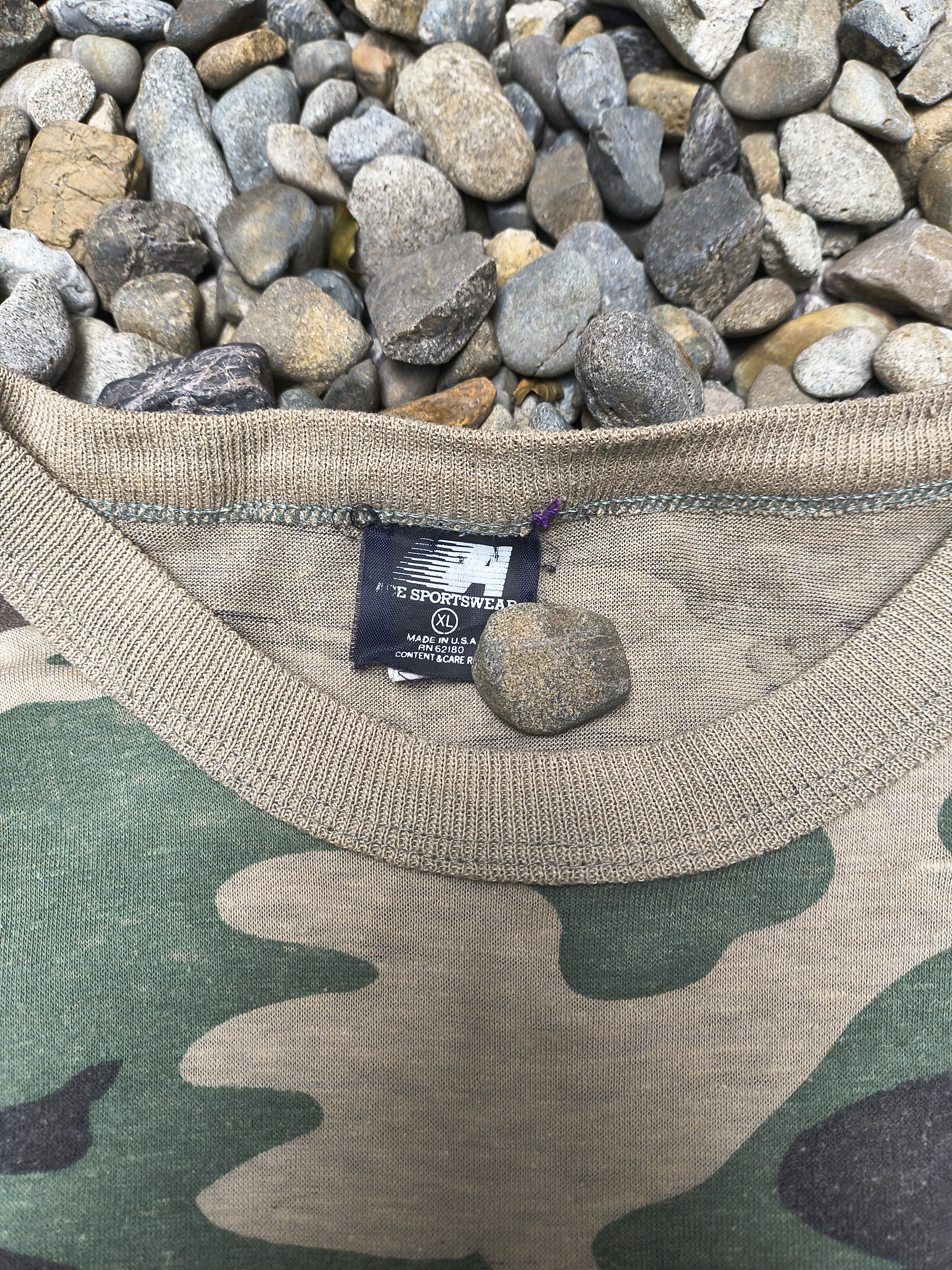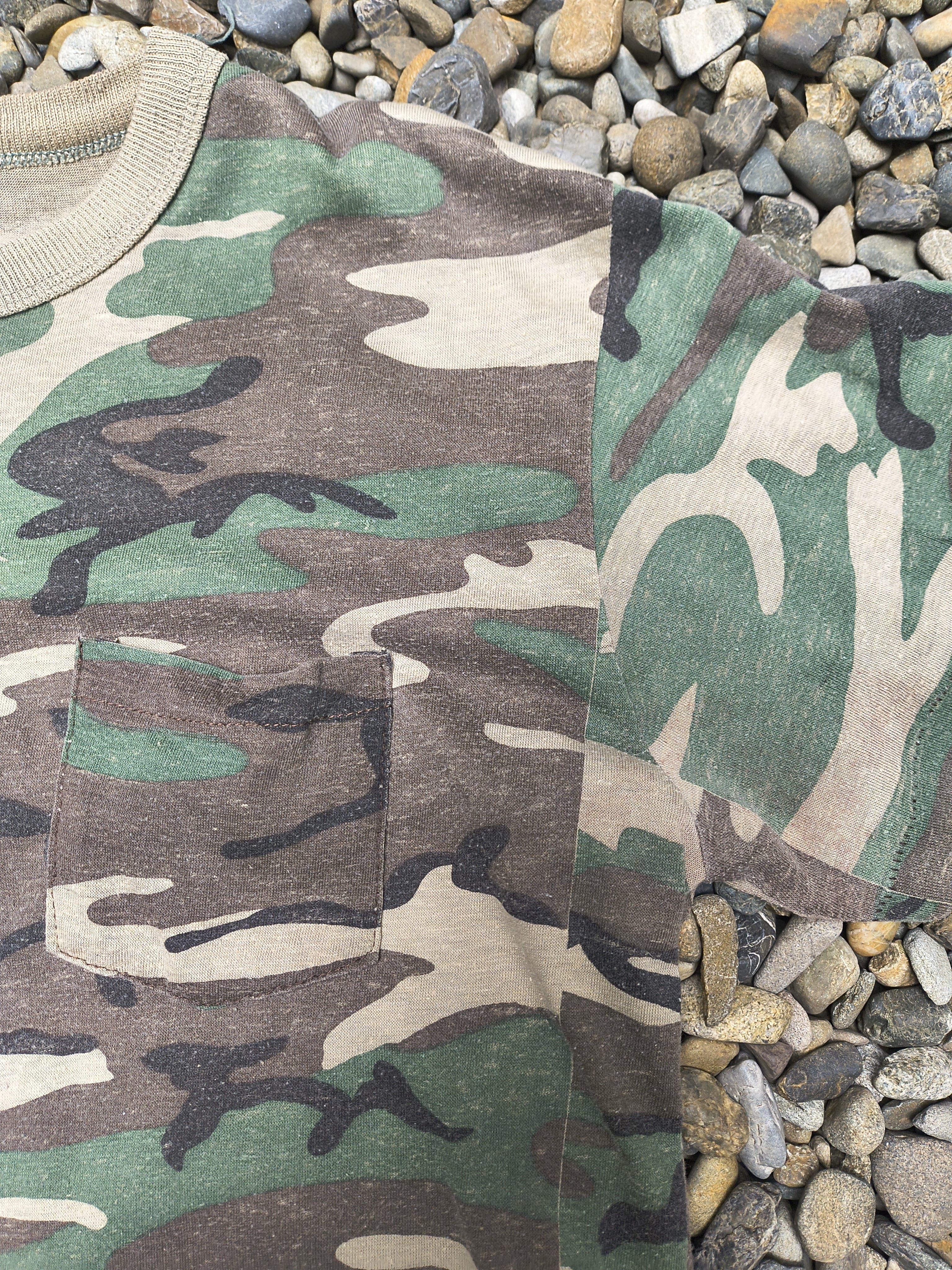 シングルステッチのカモフラージュポケットT。